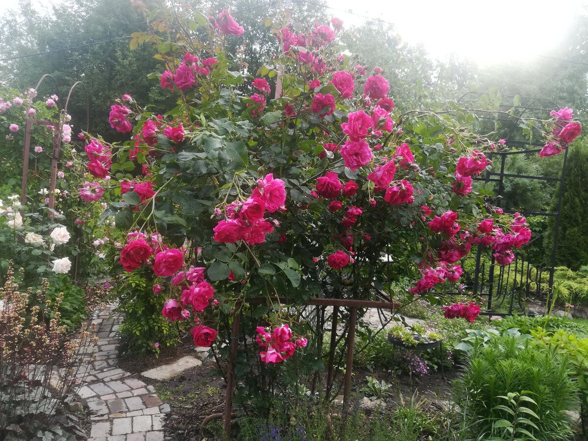 Сегодня с утра не заладилась погода. Утром не было солнца, фотографировать не хотелось. Поковырялась прямо в халате с мыльнянкой, оборвала отцветшие плети. Если многолетняя, нарастит еще. Если двулетка, значит, не судьба. А выпалывать такое количество самосева мне точно не хочется! Было прохладно, и дед с внучкой не поехали купаться на карьер. ПРишлось развлекать наше чудо, пока не пришла подружка. На полдня я была вольна заниматься, чем душа пожелает. ТОлько настроения и сил не было. Дождь то начинался, то переставал весь день. Кое-что я поделала. Что-то обрезала, что-то повязала, что-то прополола... И все же розы... Мы с внучкой читаем перед сном. Она мне Чуковского, а я ей сначала "Маленького принца", теперь "Таинственный сад". Удивительное дело, и там и там розы... Хотела процитировать что-нибудь их принца. Оказалось, надо целую главу перепечатывать. Про капризную розу, про то, как он ухаживал за ней, а она над ним измывалась... РОзы в таинственном саду, которые захотела спасти
