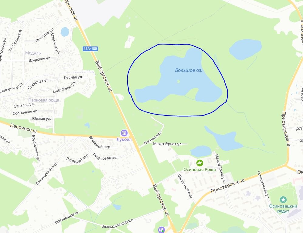 Вот и решил выбрать третий вариант. Правда до него надо ехать минут двадцать на маршрутке, и причем в сторону города. И лес там все же не лес, а лесопарк, Но зато давно хотел посетить этот водоем, который находится вблизи Осиновой рощи, в развилке между Приозерским и Выборгским шоссе.