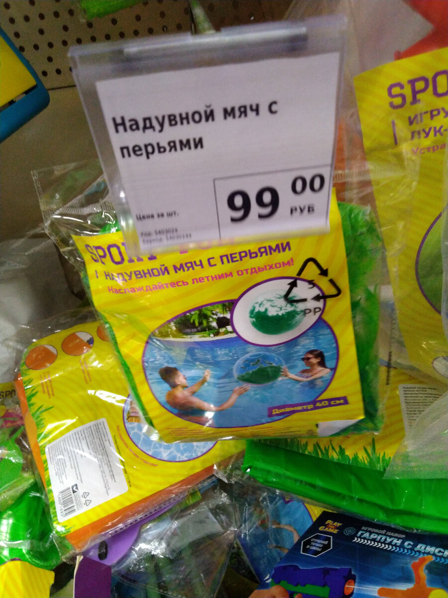 Привет всем подписчикам и гостям моего канала! Вчера зашла в Фикс Прайс за антимоскитной сеткой на окно, а там привоз и много чего новенького увидела! Сегодня я вам расскажу о товарах для отдыха и новинках в отделе "Сад и огород". Надувной мяч с перьями, диаметр 40 см. Состав: ПВХ, перья. Страна - производитель КНР. Цена 99 рублей. Надувной матрас "Неон". Состав: ПВХ. Страна - производитель: КНР. Цена 349 рублей. Ширина 270 мм, высота 300 мм. Нарукавники для плавания "Хранитель лев" надувные, Размер 23 на 15 см. Материал: ПВХ. Сделано в Китае. Цена 199 рублей. Игрушка водный пистолет Зверушка. Состав: полиэтилен, ПВХ, полипропилен, металл, бумага. Для детей от 3 лет. Сделано в КНР. Игровой набор "Шоу мыльных пузырей". Состав набора: 1 тарелка, одно кольцо для пускания пузырей, 1 пакетик с мыльным раствором 200 мл. Состав: полипропилен, мыльный раствор. Сделано в КНР. Цена 199 рублей. Мыльные пузыри "Перчатка". Состав игрушки: концентрированный мыльный раствор 30 мл, пакет для смешив