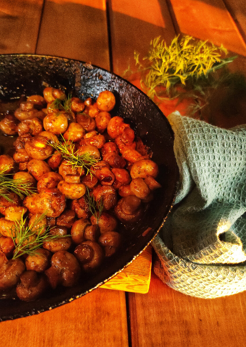 Сейчас в магазинах в продаже огромное количество шампиньонов отличающихся по сорту и размеру. Очень полюбились мне маленькие грибочки, какие они красавчики всегда на фудфотографии, ммм. И готовить их очень просто и быстро. И так, ИНГРЕДИЕНТЫ: ✔️ 250-300 гр. мини шампиньоны ✔️ 1 ср. луковица ✔️2 зуб. чеснока ✔️соль по вкусу ✔️1 ч.л. базилик сушенный ✔️ 25 мл белого сухого вина ✔️1 ст.л. бальзамического соуса ПРИГОТОВЛЕНИЕ: 1. Шампиньоны промыть и хорошо высушить, чтобы не было лишней влаги 2. На разогретой сковороде обжарить пару минут чеснок, нашинковать тонко лук, добавить к чесноку и пассеровать до золотистого цвета 3. Добавить к луку грибы и обжарить 2-3 минуты, следите чтобы лук не пригорал 4. Влить вино, добавить бальзамический соус, базилик, соль и тушить до готовности 5. При подаче украсить свежей зеленью Если понравился рецепт оставьте реакцию 👍 и подписывайтесь на мой канал, чтобы не пропустить новый вкусный рецепт Приятного аппетита!
