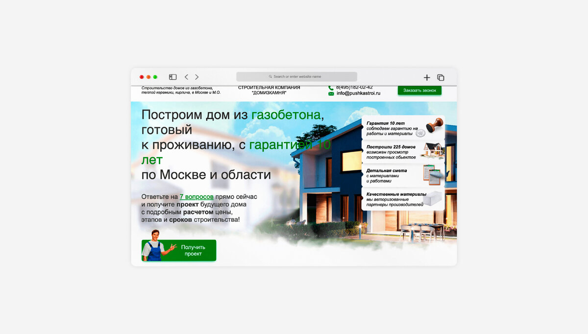 К нам обратилась строительная компания полного цикла. Заказчик проектирует и строит дома бизнес-класса в Москве и Московской области.