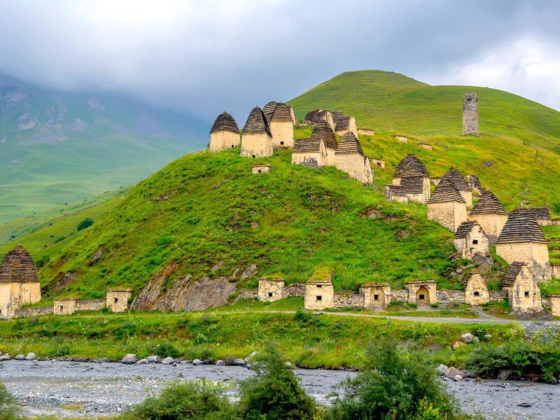 1. Даргавс (город мёртвых) С виду можно подумать, что это старая деревушка, но на самом деле это кладбище, а "домики" - это склепы и усыпальницы. Люди приходили сюда умирать, страшная болезнь их постигла - чума. До сих пор в склепах находятся останки умерших и туристы, заглянув в склепы могут увидеть что находится внутри. РЕЖИМ РАБОТЫ: с 10:00 до 18:00, понедельник выходной. СТОИМОСТЬ БИЛЕТА - 100 руб. Координаты: 42.840314, 44.445228 2. Цей (горнолыжный курорт и ледник) Люди, которые хотят увидеть своими глазами сказочную красоты Северного Кавказа, просто не могут не побывать в этом месте. Альпийские луга, бурные реки, водопады, горы в облаках, ледники - все это в одном месте! Красотой можно насладиться либо пешком: про