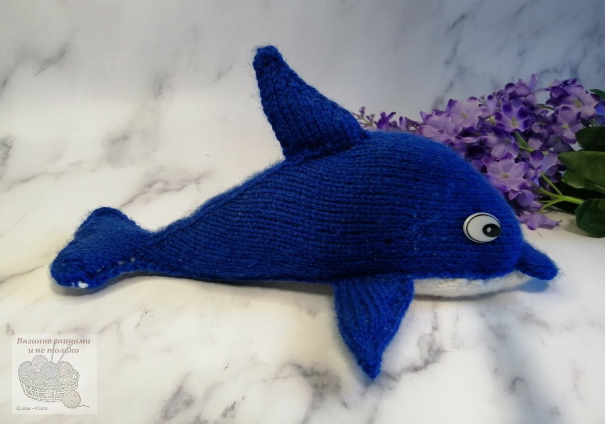 Добрый день, дорогие подписчики и гости канала! У вязальщиц, и это не секрет, всегда остается в остатках довольно много различной пряжи. Как ее использовать, чтобы она не мешалась? Один из вариантов - вязать небольшие изделия или полосатые кофточки. А я, пока у меня были маленький сын и племянницы, использовала остатки пряжи для вязания игрушек. Это был выход в те далекие 90-е годы, когда сложно было купить игрушку ребенку. Игрушки вязала спицами, используя различные описания и схемы из всевозможных журналов (интернета тогда не было и в помине). Недавно вспомнила это занятие и вот что у меня получилось Пряжа (взяла из остатков) "Детская новинка" от Пехорки. Белый цвет - 01, васильковы - 26. Состав - 100% акрил, 200 м в 50 г. Спицы и крючок 3мм. Набивку и глазки купила в рукодельном магазине. Длина игрушки - 25 см. Брюшко вязала белым цветом Спинку - голубым цветом Плавники (3 детали) голубым цветом Хвостовой плавник (1 шт из 2-х частей) Вязала по описанию спицами и крючком. Глаза в