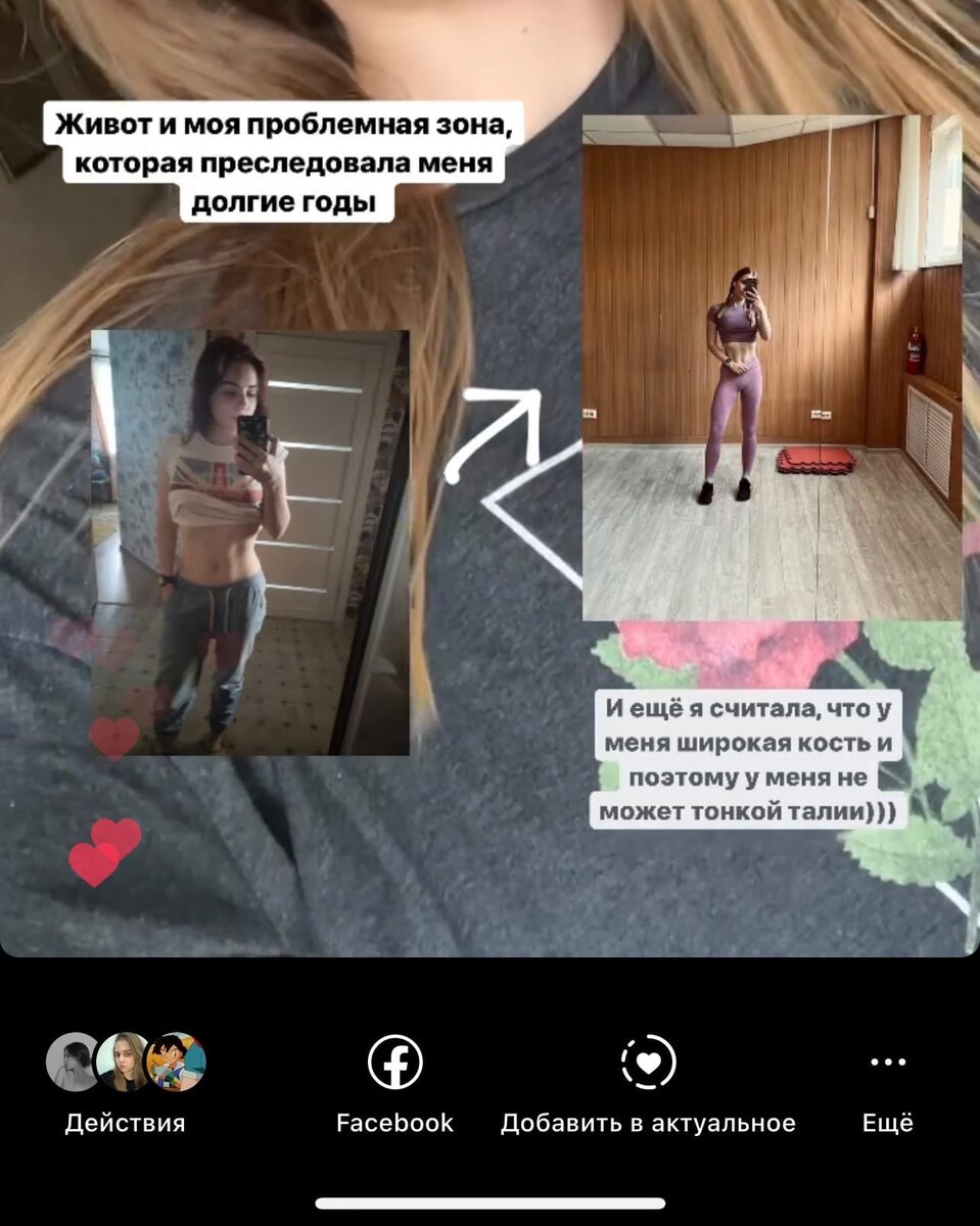 Живот – проблемная зона практически каждой из нас. И моя в том числе. Я долгое время не могла позволить носить себе топы, футболки с открытым животом, всегда старалась его как – то прикрыть, да затянуть ремень поуже… хотя, это не помогало, ведь он только сдавливал, а в итоге живот как был с жирком, так и оставался. А еще меня всегда раздражала моя талия, так как она попросту отсутствовала, и я не знала, как сделать так, чтобы она была такая, как сейчас. От этого я чувствовала сильную неуверенность в себе, когда надевала обтягивающую одежду, ведь как так, у меня же тут не все идеально! Я долго время шла к тем пропорциям, которые имею сейчас. Да, путь был долгий, но до всех моих обучений я не знала всех нюансов, чтобы быстрее достигнуть результата. На первых этапах я не понимала, что делать, тыркалась туда – сюда, исключала продукты из рациона – я перестала есть шоколад, хлеб и убрала алкоголь. Делала непонятные тренировки, не понимала, как устроен механизм и какая должна быть структура