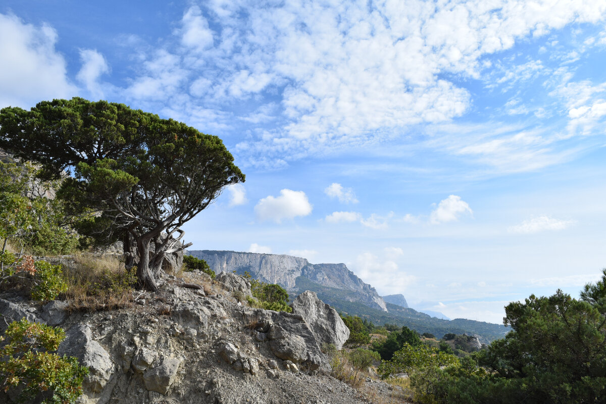 Для своих работ крымский скульптор по дереву Владимир Мещеряков использует только сухие части деревьев погибших много лет назад, как в результате старения и неблагоприятных природных факторов, так и в результате обвалов. В основном это скальный дуб, туя, кипарис, клен, кедр, можжевельник и эвкалипт. Найденные фрагменты деревьев лежат в скалах под палящим солнцем и продуваются солеными морскими ветрами десятки, а возможно и сотни лет, подвергаясь воздействию природных условий Крыма, приобретая свой уникальный цвет, неповторимость формы и твердость. Только такие экземпляры пригодны для деревянной интерпретативной скульптуры. Рождение будущего образа подсказывает сама природа — художнику остается разглядеть и додумать лик или силуэт, угадывающийся в форме дерева. Во многих работах Мещерякова органично сочетаются полудрагоценные камни, металл и орнаментальные фрагменты предметов старины. Иногда для того, чтобы подчеркнуть замысел, автор использует живопись, придающую произведениям автора с