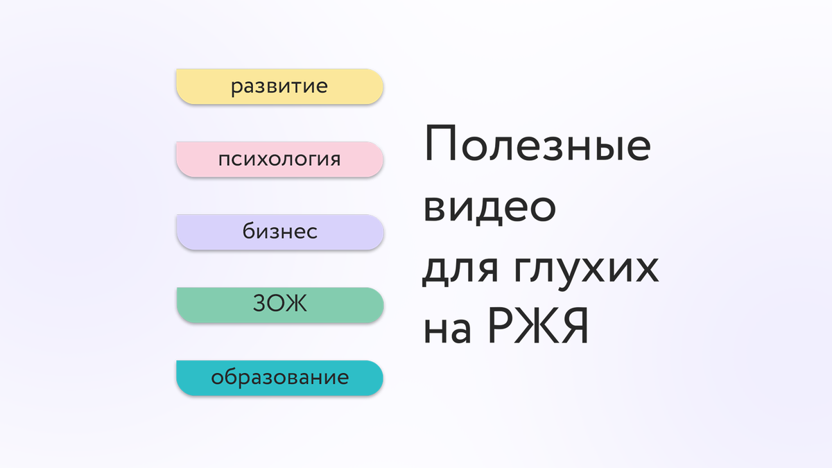 Пять категорий и около 200 видео на жестовом языке. Предусмотрены субтитры. Наш проект Surdoclass поможет тебе освоить новые навыки, найти друзей и интересные хобби. Выбирай, что смотреть. ✅ Развитие Кулинария, живопись, литература, ПДД. Все курсы в одном месте. ✅ Психология Личностное развитие, семейные отношения, воспитание детей, поиск работы. Стань лучше. ✅ Бизнес Создание бизнеса, профессиональные навыки, маркетинг и дизайн. Освой новую профессию. ✅ ЗОЖ Снижение веса, правильное питание, тренировки, косметология. Приведи себя в форму и избавься от вредных привычек. ✅ Образование Подготовка к экзаменам, репетиторство. Подходит для школьников и студентов. Больше полезностей можно найти в наших соцсетях. Подписывайтесь: ✅ YouTube: youtube.com/c/Surdoclass/videos