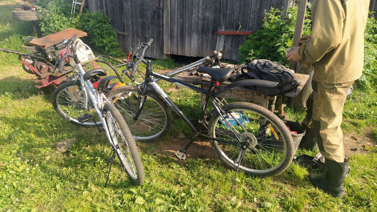 Рано утром, встав после тяжёлой ночи, встали с братом и решили отправиться на рыбалку. Черви уже были заготовлены, но пока позавтракали и собрали вещи, было уже около 9 утра. Не стали медлить, сразу поехали на велосипедах к близлежащему ручью, путь до него занял минут 10 под гору. Дорога была не совсем уж и легка, сказывалось отсутствие какой-либо амортизации на велосипедах, даже банальных пружин в седле не было, складывалось ощущение езды по стиральной доске.😂 Преодолев около 1,5 километров пути, мы прибыли в точку назначения, оставили свои транспортные средства и отправились ниже по течению. Далее предстоял тяжёлый путь через завалы. А их поверьте было очень много. Чтобы преодолеть +-300 метров нам пришлось потратить около получаса. Пройдя по речушке стало понятно, что рыба есть. В небольших омутках глубиной около 1 метра, виднелась активность мелких рыбёх, местные называют их - аргыши, правильного названия к сожалению не знаем. Для рыбалки взяли простую телескопическую удочку длин