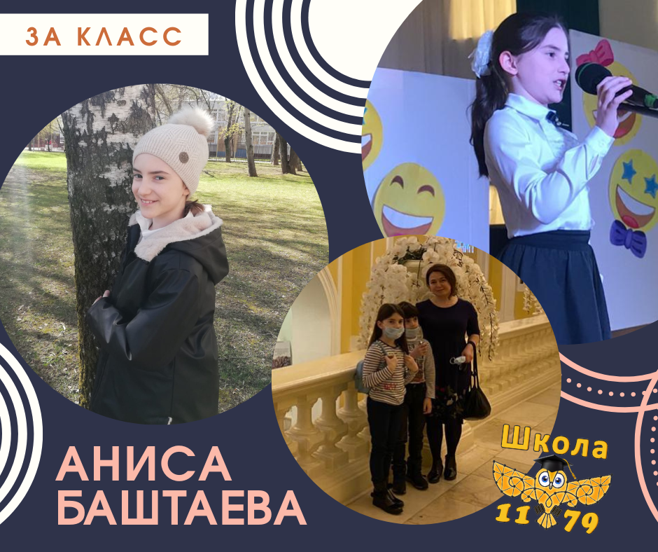 Знакомьтесь — Аниса Баштаева, ученица 3 А класса. Этот учебный год запомнился Анисе участием в конкурсе рисунков «Военный вернисаж», на котором она заняла 3 место и сдачей норм ГТО, где она получила серебряный знак. А еще наша ученица всей семьей сдавала макулатуру. «Очень сожалею, что не приняла участие в фестивале о странах мира, где наш класс представлял Японию, получилось здорово!» — говорит Аниса. Аниса старается участвовать во всех олимпиадах. В этом году она приняла участие в очень интересной олимпиаде «Московский третьеклассник», а также в олимпиаде по математике, русскому языку и окружающему миру. За этот год Аниса прочитала много книг. У нее в семье ритуал — перед сном она, мама и брат читают друг другу. Особенно ей понравилась трилогия «Пеппи длинный чулок», «Чук и Гек» и «Приключения Тома Сойера». На 8 марта всем девочкам класса подарили книгу «Таинственный сад» английской писательницы Френсис Бёрнет, удивительно, но Аниса была незнакома с творчеством этой писательницы.