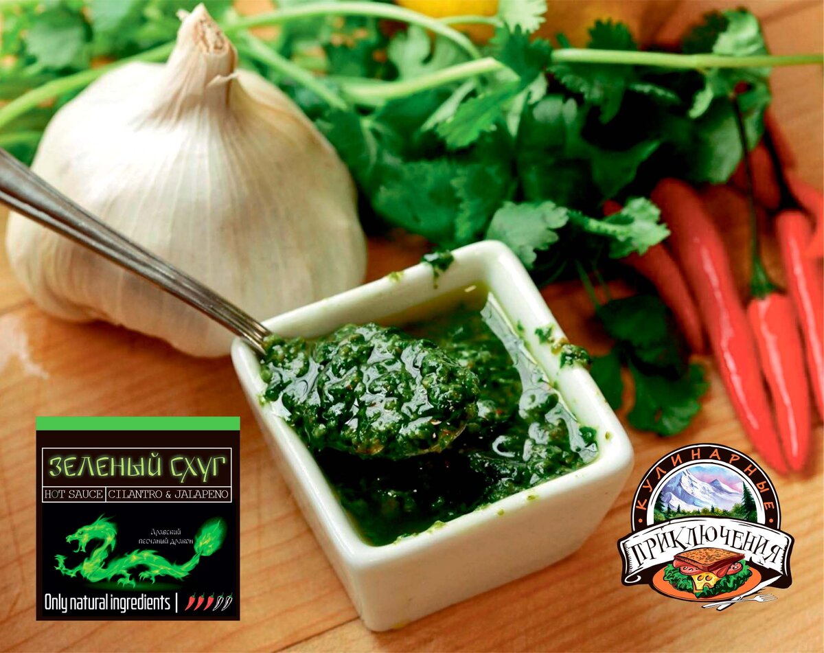 Зелёный схуг - йеменский острый соус с халапеньо и кориандром.