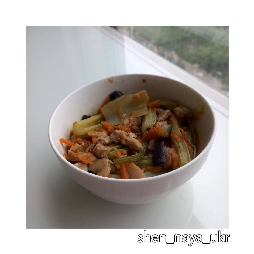 Селера в Китаї - поширений продукт й не дуже дорогий. Якщо чесно, я ніколи не готувала його. В інтернеті дієвих порад я не знайшла. Тому почала вигадувати щось. В принципі, вийшло дуже незвично та смачно. #ПП #рагу #літо #страви Ингредиенты: Стебла селери, Баклажан, Морква, Часник, Сіль, приправи, Грудка куряча Способ приготовления: Нашинкувати моркву. Обсмажити або протушкувати. Я зробила це як завжди,за допомогою води. Додати сіль та перець. Додати ще трішки води та туди покласти селеру. Тушкувати 10 хв, час від часу помішуючи Нарізати кубиками баклажан. Додати до селери з морквою. Тушкувати 10 хв Потім нарізати грудку. Я нарізала соломкою. Додати до варіння. Можна додати столову ложку соєвого соусу Так тушкувати 10 хв. Коли закінчили тушкувати, вимкнути вогонь та додати подрібнений часник 🧄 Перемішати все добре, накрити кришкою й дати постояти 10-20 хв. Смачного ❤️