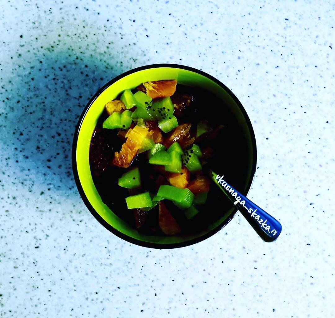 #rawvegan #vegan #доброеутро #delicious #govegan #photo #yummy #нямням #rawveganrecepies #healthyfood #video #сыроедение #сыроедческиерецепты #веганство #веганскиерецепты #осознанность #yemekvideo #günaydın #полезнаяеда #правильноепитание #goodmorning #retetesanatoase #vegancrudivor #cruditati #lezzetli #vejetaryen #çiğvegan #chocolate #yemekfotograflari #chiapudding #пост Ингредиенты: семян чиа, воды, апельсин, киви, тёмного шоколада, мёда Способ приготовления: Семена чиа залить водой, дать набухнуть в течение 3-4 часов, можно оставить на ночь. На водяной бане растопить шоколад, добавить мёд. Соединить чиа с шоколадом. Фрукты нарезать, добавить в десерт. Подать. Разделить с любимым человеком. Приятного аппетита! ♥