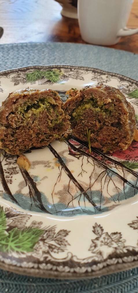 Отличный вариант для тех, кто не любит жареное: котлетки в духовке. Летняя зелень дает великолепный вкусовой оттенок мясу Для диеты эти котлетки хорошо делать из куриного фарша #кукпадготовит Ингредиенты: фарш домашний, яйца, ч.л.хмели-сунели, ст.л.чеснок молотый, ч.л.вкусная соль, ч.л.паприка копченая, По 3 веточки свежего чабера, чабреца и зеленого базилика, Небольшой пучок свежего укропа, листиков мелиссы, Соус песто 11 ложечек по 1/2 ч.л Способ приготовления: Фарш отбить! (Важно, т.к я не отбила - получилось жестковато), перемешать с яйцами и специями Зелень перебить в измельчителе, добавить в фарш Сформировать котлетки, внутрь по 1/2 ч.л.песто. У меня собственного производства по этому рецепту: В разогретую духовку на 180 град на 30-35 минут Приятного аппетита!