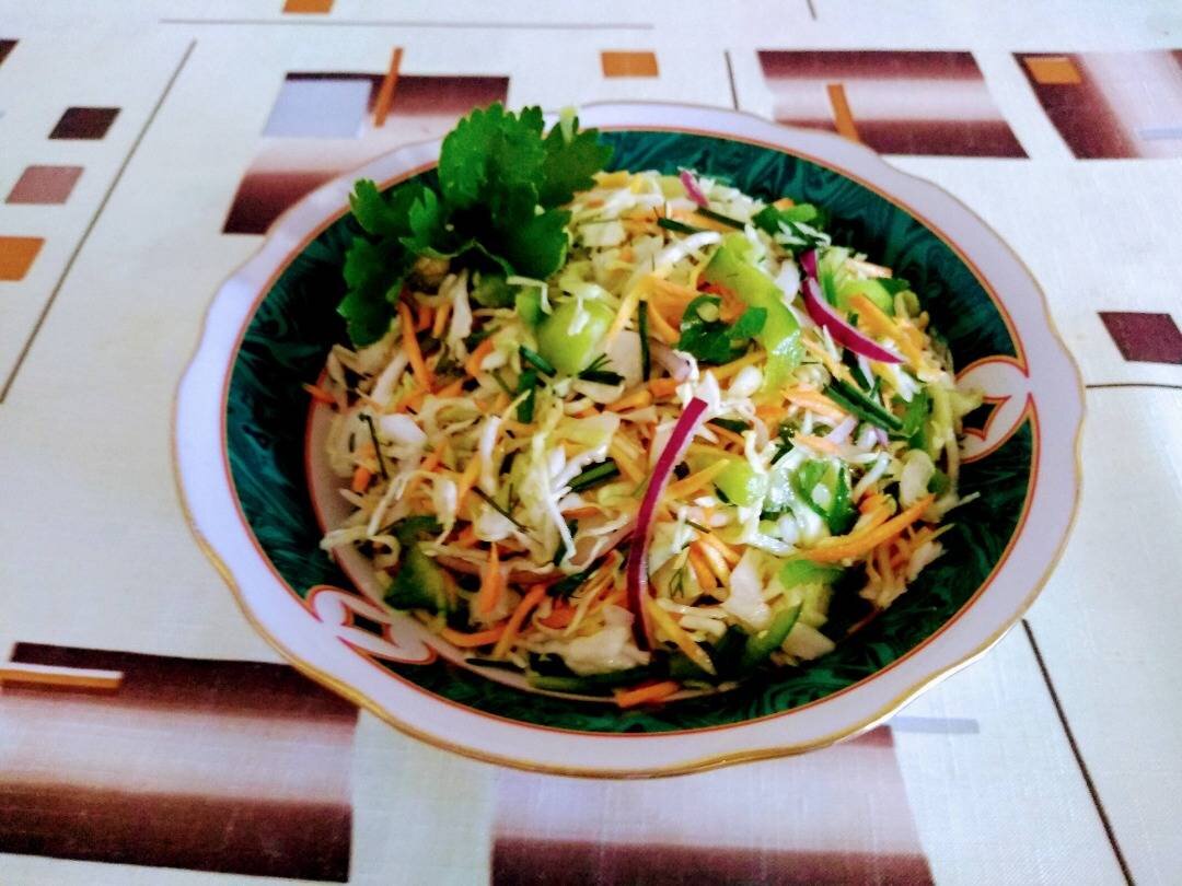 #понедельник #летнийсалат Полезно вкусно и быстро к тому же отличная закуски! Салат из капусты с болгарским перцем морковью и соком лимона ,принесут вашему организму огромную пользу. Мало калорий - максимум вкуса. Спасибо за вдохновение автору Светлане Лыжиной! @Sveta_ly Ингредиенты: Капуста белокочанная, Морковь, Перец сладкий, небольшие, Лук репкой красный, Масло оливковое или любое растительное, Сок лимона, Сахар, Соль, Зелень любую (у меня укроп, петрушка, листья сельдерея) Способ приготовления: Подготовить необходимые ингредиенты. Овощи помыть и почистить. Тонко нашинковать капусту, и выложить в миску. Морковь натрём на тёрке для корейской моркови. Лук нарежем перьями и добавим к капусте. Перец нарезать соломкой. Зелень мелко нарезать. Добавить в миску. Готовим заправку для нашего салата. Для этого смешиваем в стакане растительное или оливковое масло, сок лимона, соль и сахар. Перемешиваем до растворения соли и сахара. Вливаем заправку в миску с салатом и все тщательно перемешивае