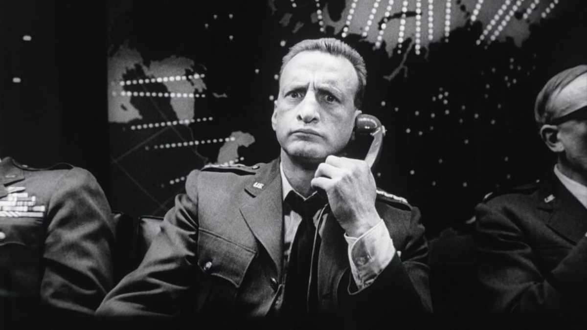 Ядерная конфронтация – совершенно абсурдная идея, но, к сожалению, этот зловещий абсурд потенциально возможен. Однако даже над такой жутью можно посмеяться, заодно проехавшись по всем этим бесконечным солдафонам и политиканам, наводняющим государственные ведомства. Именно это сделал Стэнли Кубрик в фильме «Доктор Стрейнджлав, или Как я перестал бояться и полюбил атомную бомбу». В середине 60-х отношения между двумя сверхдержавами (СССР и США) дошли до грани открытого столкновения. С обеих сторон плодятся сторонники жестких мер – мол, давайте поскорее сотрем противника с лица Земли. Вот и в Америке на одной из баз ВВС находится свой психопат, генерал с говорящим именем Джек Риппер. Руководствуясь самым махровым антикоммунистическим бредом, он, ни с кем не посоветовавшись, отправляет звено стратегических бомбардировщиков бомбить Советский Союз атомными боеголовками, заранее позаботившись о том, чтобы никто, кроме него, не смог остановить летчиков. Английский полковник Мандрейк, присутс