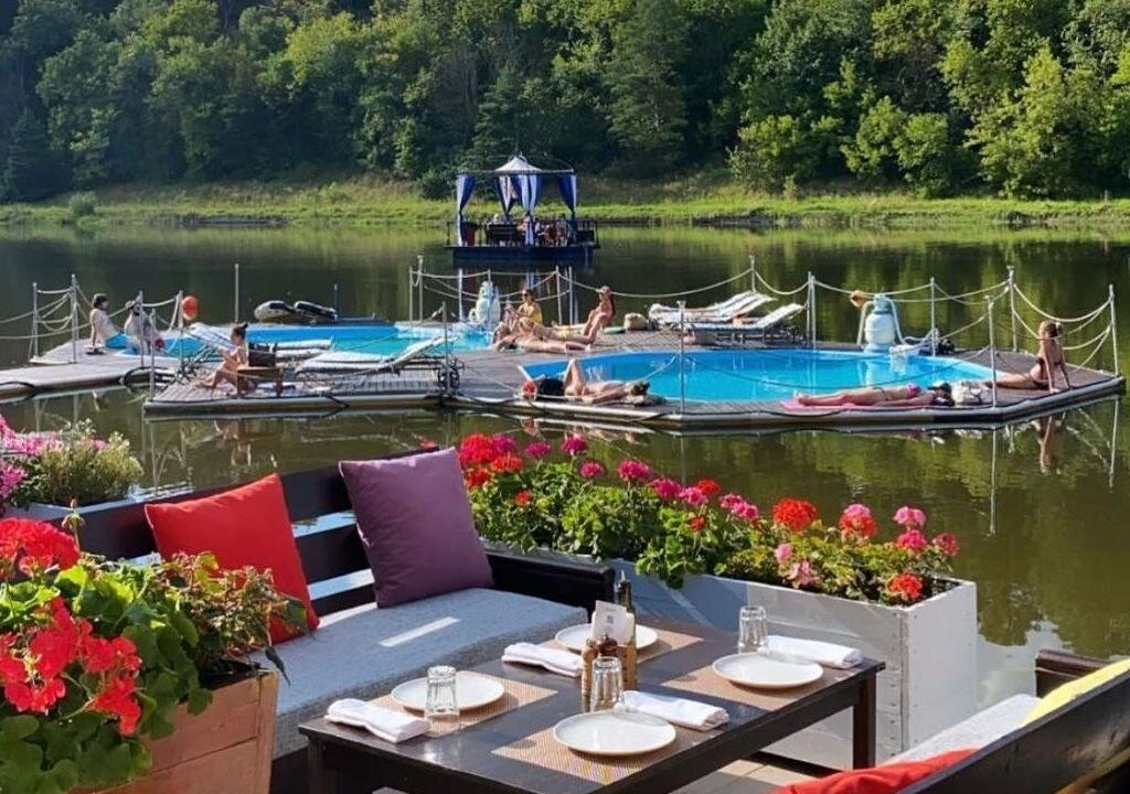 Ресторан «Причал» от Novikov Group расположился недалеко от поселка Барвиха. Публика и цены здесь соответствующие. Пляж рядом с рестораном небольшой, а на воде дрейфуют два небольших бассейна: взрослый и детский, без подогрева. Вход стоит от 1000 рублей, полотенце входит в стоимость. В меню всего понемногу: роллы и гунканы, салаты, хинкали, пицца, плов и шашлык, а по выходным и праздникам готовят ягненка на вертеле.