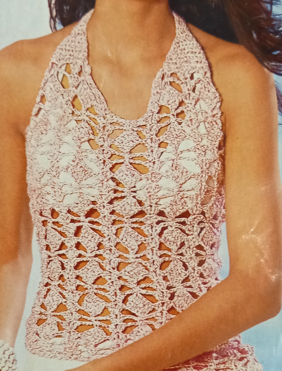 Всех приветствую на своем канала. Рада, что заглянули ко мне. Прозрачные #летние топы связанные крючком идеальны для летних денечков. Предлагаю подборку из трех топов. 1. Прозрачный топ Размер: 42-44 (российский) Потребуется: 250 г бело-розовой меланжевой пряжи (50 % хлопка, 40% акрила, 10% полиамида), крючок № 5. Основной узор: число наборных петель кратно 12 +1 + 3 воздушные петли подъема. Вязать по схеме, представленной ниже. Спинка: связать цепочку из 85 воздушных петель + 3 воздушные петли подъема и вязать основным узором. Закончить работу через 29 см от наборного края. Перед: начать, как и спинку. Через 29 см от наборного края оставить для пройм с обеих сторон 6 см и вязать прямо. Через 33 см от наборного края оставить для выреза горловины средние 6 см и обе стороны закончить раздельно. Через 37 см от наборного края связать на оставшихся петлях 15 столбиков без накида. Продолжить вязать столбиками без накида, при этом для придания формы оставить с обеих сторон в каждом ряду 5 х