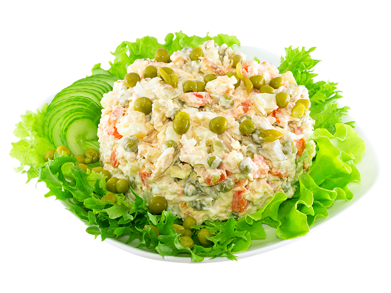 Ингредиенты: Этапы приготовления: Салат «Оливье» – неизменный король блюд на праздничном столе. Как же отметить Новый год, День Рожденья или юбилей без этого замечательного блюда? Красивое иностранное название салата оливье порой сбивает с толку. Кажется, что он родом из прекрасного Парижа, где он столь же почитаем, как и в России. Но это является глубочайшим заблуждением, так как это блюдо исконно русское, основанное на традициях и вкусовых предпочтениях представителей русского дворянства девятнадцатого века. Салат был придуман в одном из московских ресторанов французским поваром Люсьеном Оливье специально для русских посетителей. В состав классического салата оливье девятнадцатого века входили рябчики, раковые шейки, телячьи языки и каперсы. В настоящее время существует альтернативный вариант классического рецепта салата оливье, приведенный в соответствие с современными продуктами и вкусовыми предпочтениями сегодняшнего поколения. Все ингредиенты в этом салате лучше накрошить небольш