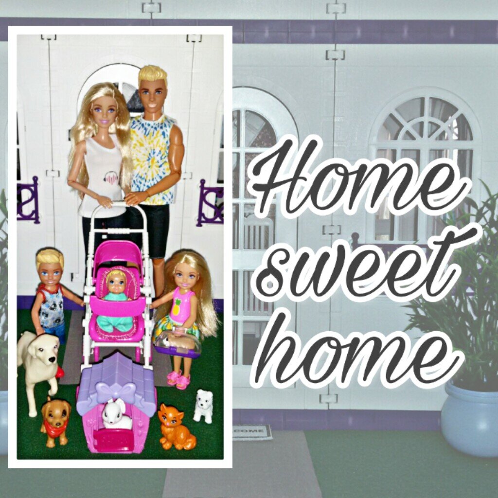 Особо ничего «мудрить» я не стала: коврик для обуви, кусты в горшках по бокам. Серый кусок — это имитация бетонной дорожки к дому:). На балконах марсианские цветы в горшках я заменила на не так бросающиеся в глаза, вроде более-менее гармонично…