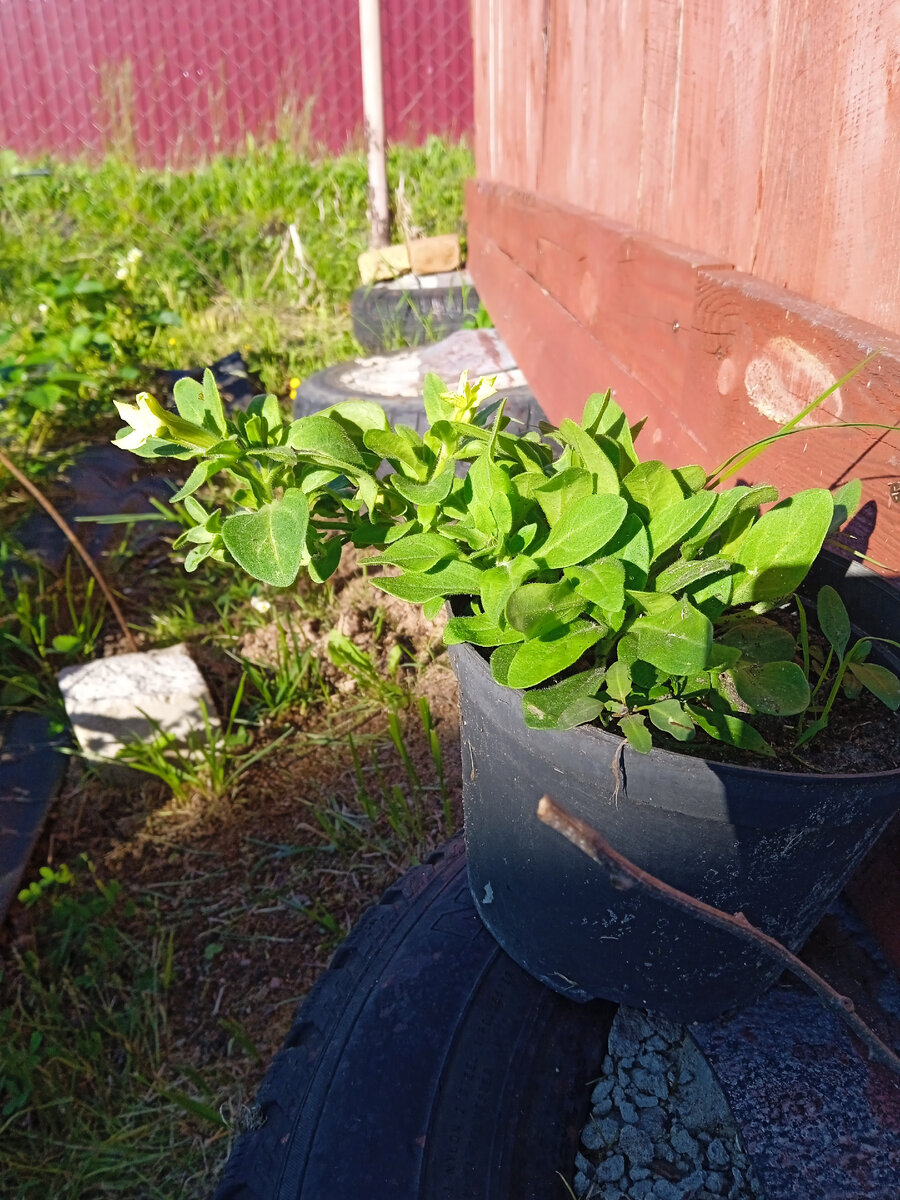 Здравствуйте! Говорят, чтобы добиться пышного и продолжительного цветения петуний, необходимо соблюдать 4 правила ухода за этими цветами. 1. Вовремя поливать 2. Прищипывать 3. Убирать засохшие цветы 4. Кормить в достаточном количестве У многих дачницы я видела великолепные шапки петуний. Но у меня видимо пошло что-то не так. Мои саженцы вытянулись, точнее не совсем мои, саженцы были честно куплены в садоводческом магазинчике в количестве 2 штук. Петунии цветут, но как-то один цветок на всё растение маловато. Будем пытаться изменить внешнее состояние петуний в лучшую сторону. Эксперимент начинается... Думаю, что именно мои петуниям в первую очередь не хватило подкормки. Как бы не сжималось сердце, но всё-таки для начала необходимо убрать цветки, не жалея, открываем их и даём растениям возможность набрать зелёную массу. Как известно для формирования боковых побегов необходимы азотные подкормки, так мы кормили чеснок вместе с вами. Кстати, у меня есть маленькая статья на эту тему,