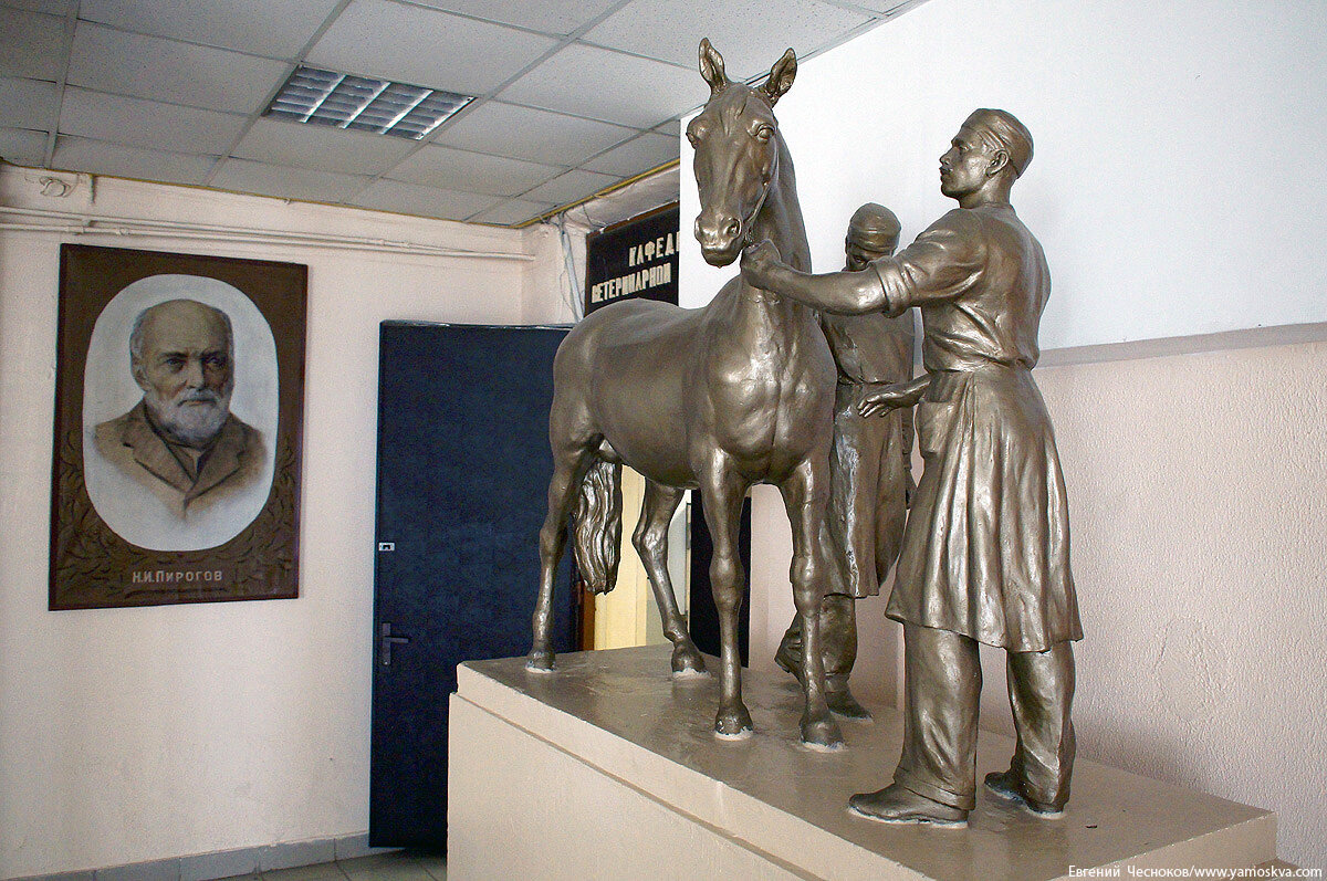 К 100-летию Московской ветеринарной академии у входа в Инновационный ветеринарный центр был установлен памятник Константину Скрябину. Изначально в этих зданиях, построенных в 1930-е годы, размещались конюшни и виварий.