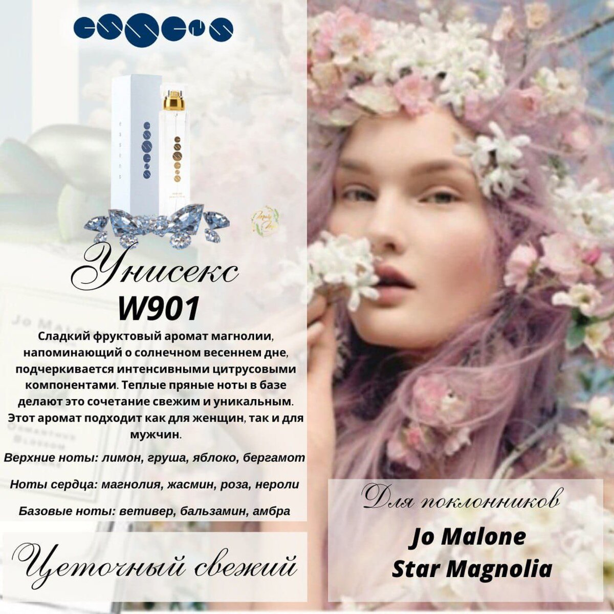 "История создания аромата" Аромат под номером 901 для поклонников JO MALONE STAR MAGNOLIA Весна – лучшее время для того, чтобы носить романтичные и женственные, легкие и нежные ароматы. И особенно в свою коллекцию хочется заполучить аромат, передающий всю глубину самого весеннего цветка, который распускается в середине весны и заполоняет своим чувственным тонким ароматом все пространство столичных ботанических садов – магнолии. Улавливая тренды, британский бренд Jo Malone London исполняет наше желание и дарит лимитированную коллекцию одеколонов с ароматом магнолии - Star Magnolia. Главная нота парфюмерной композиции – это, конечно же, нежнейшие белые соцветия звёздчатой магнолии, придающий аромату зеленый весенний оттенок. Драгоценный цветок обрамлен свежим аккордом цветов апельсинового дерева с добавлением кокетливого микса из лимона, имбиря и перилла. В шлейфе читается чистый сандал, завораживающий прохожих своим сильным, но утонченным звучанием. Авторство аромата Star Magnolia п