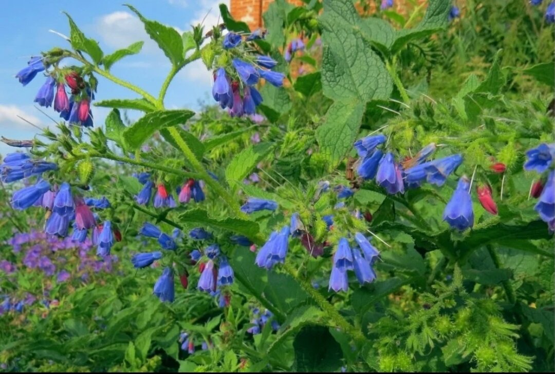 Шершаво-сизый окопник с яркими синими цветками, внезапно появившийся на краю огорода, – гость полезный. Он красив сам по себе, является отличным медоносом, по осени его крупные побеги можно срезать и добавить к перепревающему компосту. А если заготовить немного сухого корня, в кладовке всегда будет запас народного лекарства для лечения досадных и болезненных травм.
