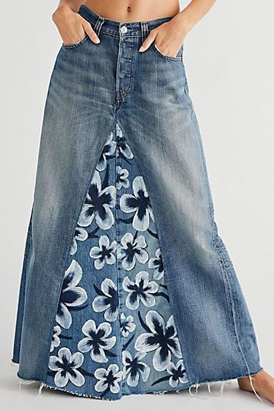 И вот такие юбки, я думаю придутся по вкусу многим модницам)))) Можно сделать вставки из джинсы в технике пэчворк или расписать их вручную, как на этом фото...