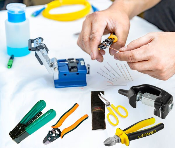 Чтобы разделывать оптический кабель, нужен определенный набор инструментов для оптоволокна, среди которых: