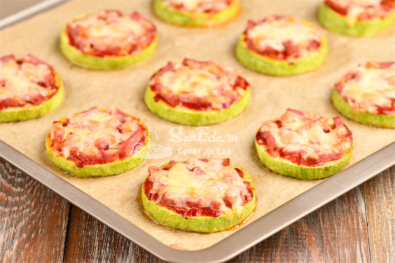 8. Они прекрасно подходят в качестве перекуса и на закуску. За счет кабачка пиццы получаются очень сочными, колбаса и сыр дают замечательный вкус. Это очень ароматное и вкусное блюдо.