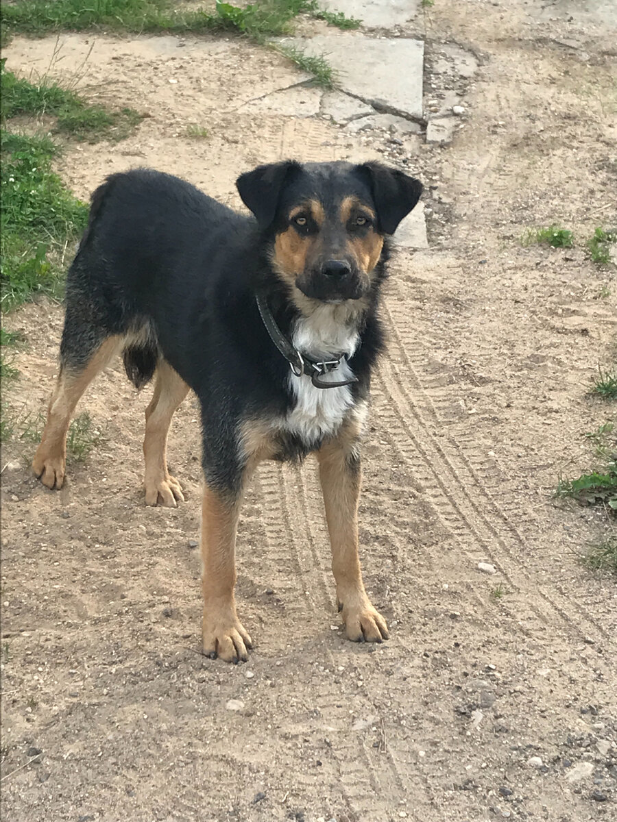 Дейл - парень не наш. Он общественный. Его усыновила деревня. Где-то полгода назад назад люди обратили внимание на молодого пса, который постоянно обретается на въезде в деревню. Пес не проявлял вообще никаких признаков агрессии, и было решено взять над ним шефство. Поставили ему будку, сделали прививки, завели паспорт. Всем скопом жители покупают ему корм. Дейл живет как сыр в масле катается. Сыт, обут, одет, с собственным жильем и при этом абсолютно свободен. Он быстро сообразил, куда стоит ходить, куда нет, где ему рады. К нам он приходит побрехать с нашими через забор. Нормальное интеллектуальное развлечение. Очень комфортный, никому не мешающий пес.