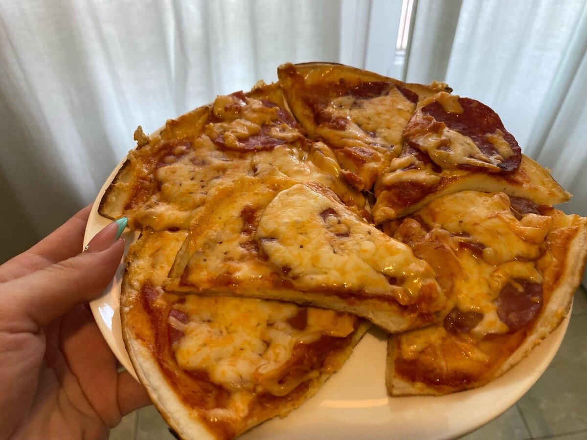 Когда хочется пиццы здесь и сейчас, почувствовать этот вкус, пожалуйста! Лёгкий и проверенный рецепт для вас. Мне так понравилось её готовить, я готовлю сразу две или три потому, что ну очень быстро её потом съедают ))) Я понимаю, что классическая пицца в духовке намного вкусней, но будем отталкиваться от того мнения, что этот вариант тоже может пригодиться на все случаи жизни. Например когда-то я снимала квартиру и там не было духовки и, если бы я знала этот рецепт ранее, наверное я бы не заказывала пиццу, а жарила на сковородке сама и кто знает, может так было бы проще )) Ингредиенты для теста : Начинка любая какая вам захочется у меня просто соус, колбаса и сыр. Но, я пробовала и с грибами, и с маслинами и помидоры добавляла, в общем, что любите. Смешиваем яйцо и сметану Добавляем муки и соль. Тщательно перемешиваем. Сковородку смазываем маслом, выкладываем тесто и добавляем соус Дальше кладём колбаску, сыр и закрываем крышку. На умеренном огне минут 5 Всё отлично пропекаетс