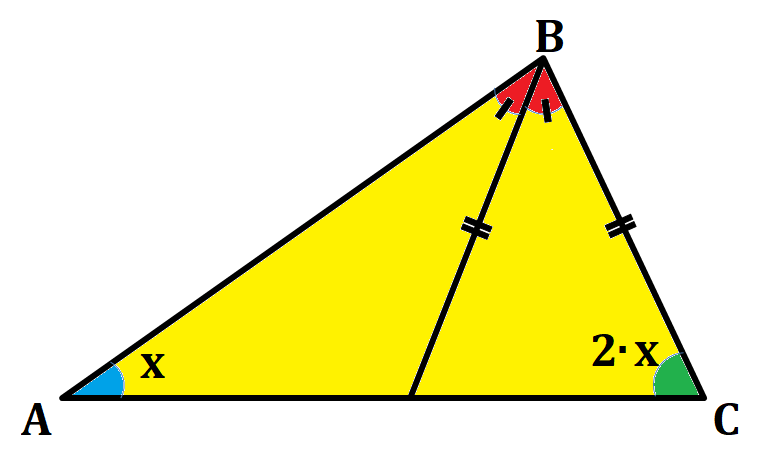 Оглавление к задаче даю в оригинале. Биссектриса угла треугольника равна стороне треугольника. Обратите внимания на эту особенность. С остальным, я думаю, вы разберётесь. Необходимо найти значение х. Всем удачи.