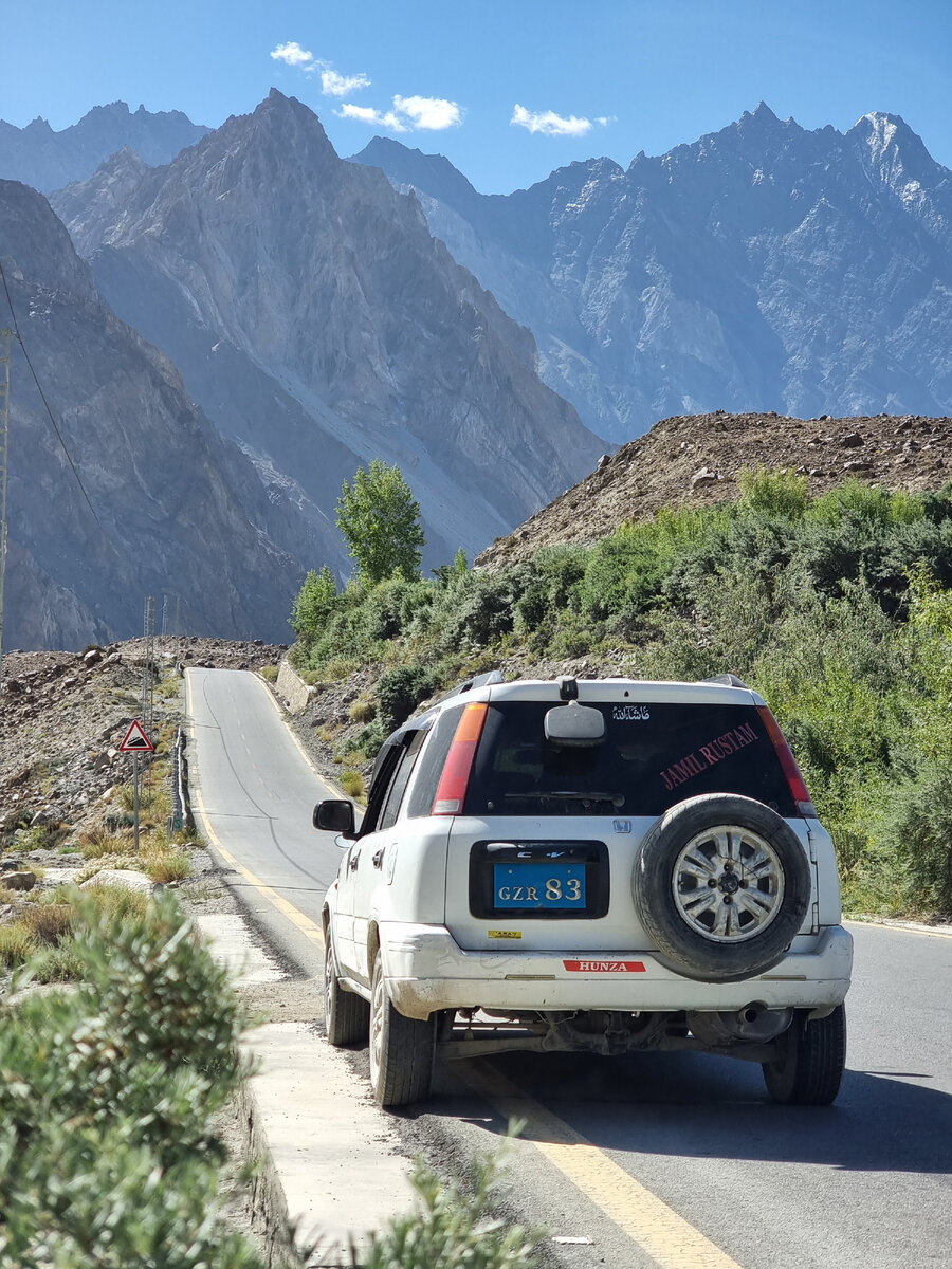 Пока, наконец, не оказалась на обзорной площадке с видом на хвостик ледника Пассу, практически "впадающего" в долину реки Хунзы. Тут дорога заканчивалась. Я увидела с десяток машин, несколько магазинов/кафешек, в которых сидели туристы, которые, видимо, не пошли на трекинг к леднику вместе с остальными.