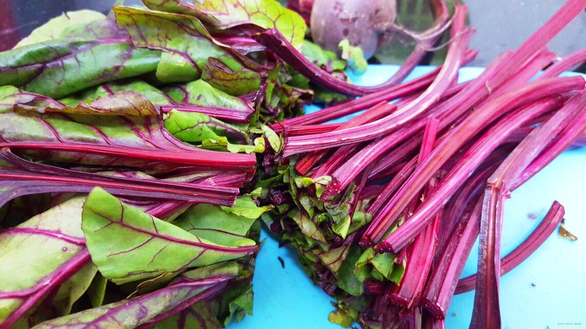 Люблю в сезон готовить борщ с молодой свеклой. Идет в дело и сам корнеплод, и свекольная ботва вместе с сочными черешками. Свеклу натираю на крупной терке, припускаю вместе с морковью и томатами в сотейнике, добавляю в почти готовый борщ. Затем наступает черед мелко нарезанных черешков (примерно по 1,0 - 1,5 см). Ботву шинкую не слишком мелко, и добавляю в борщ уже перед самым выключением огня. Вот и в этот раз, вырвала на даче несколько молоденьких свеколок для борща. Лето у нас выдалось в этом году холодное, ботва до сих пор не выгорела и не сильно загрубела. Пока обрывала черешки с зелеными упругими и сочными листьями, задумалась, - жаль выбрасывать столько витаминной зелени. На один борщ достаточно 6-8 листьев с черешками, а остальная часть быстро пожухнет. Тут пришла мысль, а не заморозить ли ботву? А что? Укроп, петрушку заготавливаю таким образом уже не первый год, почему не попробовать и со свеклой. Оговорюсь, я не предполагала, что это какое-то открытие с моей стороны. Где