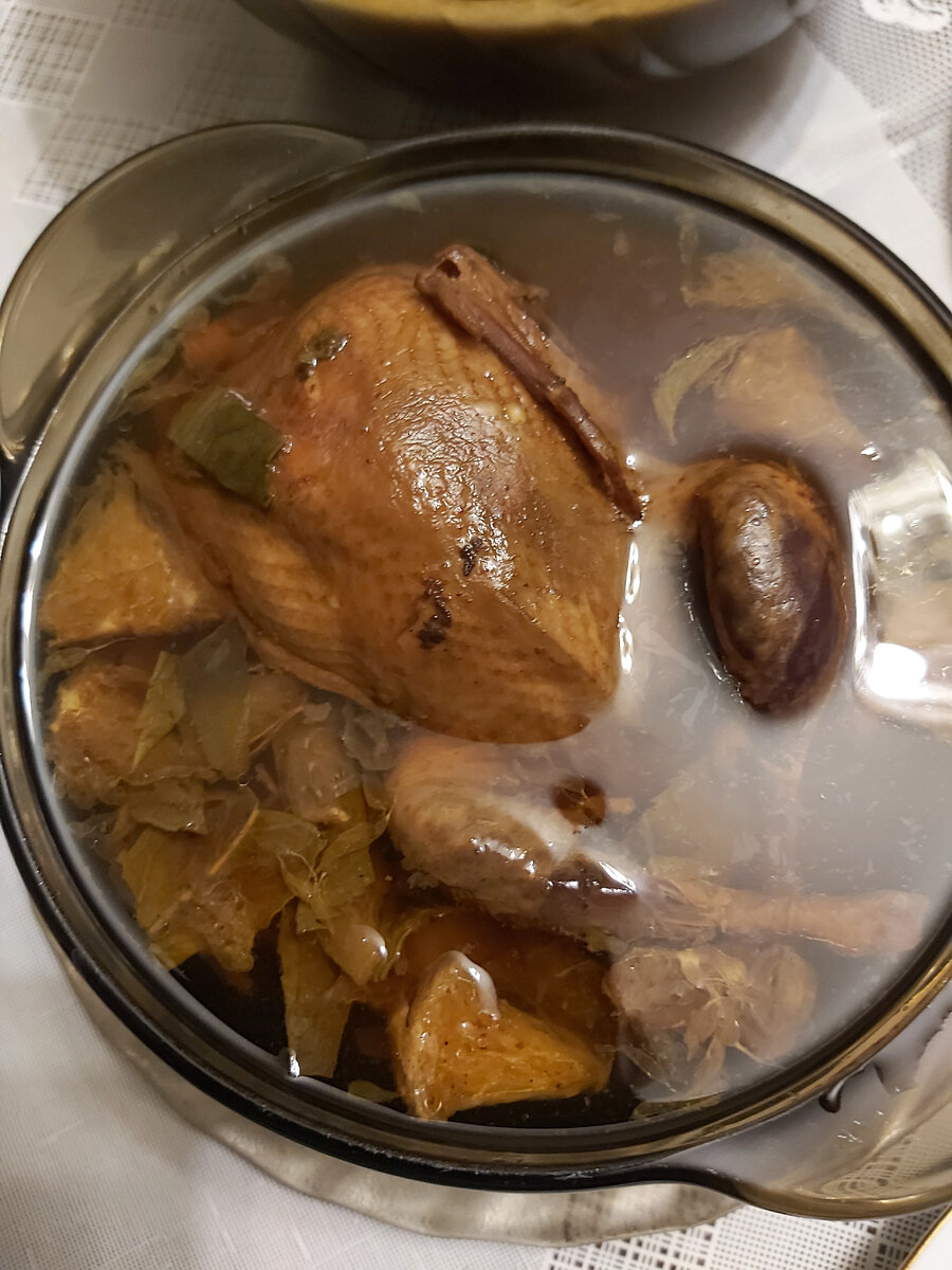 Хюрре́м Хасеки́-султа́н - супруга султана Сулеймана Великолепного, больше известная у нас как Роксолана, обожала перепелок с апельсинами в гранатовом соусе! Но у нее была большая проблема - в жарком климате, под палящим османским солнце, готовые блюда хранились не долго - поэтому во дворце приходилось держать несколько сотен поваров, которые готовили перепелов каждый день! Мои же перепела, в соусе, состоящим из мёда, апельсинов, корицы, мяты и гранатового сока, готовятся в автоклаве по всем технологиям, позволяющим хранить готовое блюдо в банке без холодильника до 6 месяцев! Но кто ж такой срок выдержит! В большинстве случаев, мои консервы поедаются в первве же дни - будь то офис, дом, дача или любое другое место, где лень готовить, а кушать хочется! Рекламно-просветительская часть текста закончилась, теперь пара слов о соусе, который я готовил для перепелов. Все это дело хорошенько прогреть и дать настояться. Далее заливаю соусом банки с цельными перепелами. Не до конца, нужно обяза