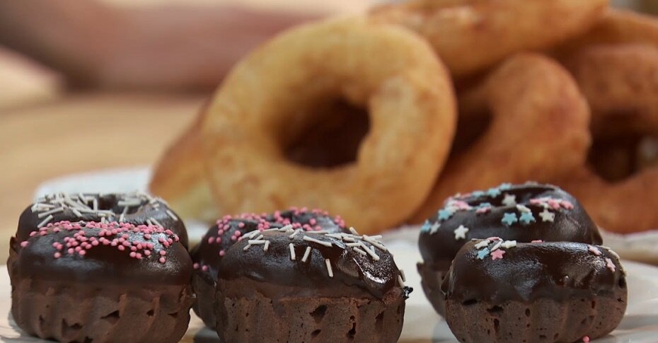 Ингредиенты Способ приготовления 1. Растапливаем 30 г сливочного масла, соединяем 125 мл молока, 60 г сахара, яйцо, 20 г какао, 5 г разрыхлителя, вливаем растопленное сливочное масло, перемешиваем, всыпаем 160 г муки, перемешиваем. 2. Выкладываем тесто в формы для пончиков, ставим в духовку на 180 градусов на 15 минут. 3. Растапливаем шоколад на водяной бане, добавляем 50 мл молока, хорошо перемешиваем. 4. Окунаем пончики до середины в глазурь, украшаем кондитерской посыпкой. 5. Приятного аппетита! Подписывайтесь на канал, ставьте лайки ❤️ Спасибо за внимание!
