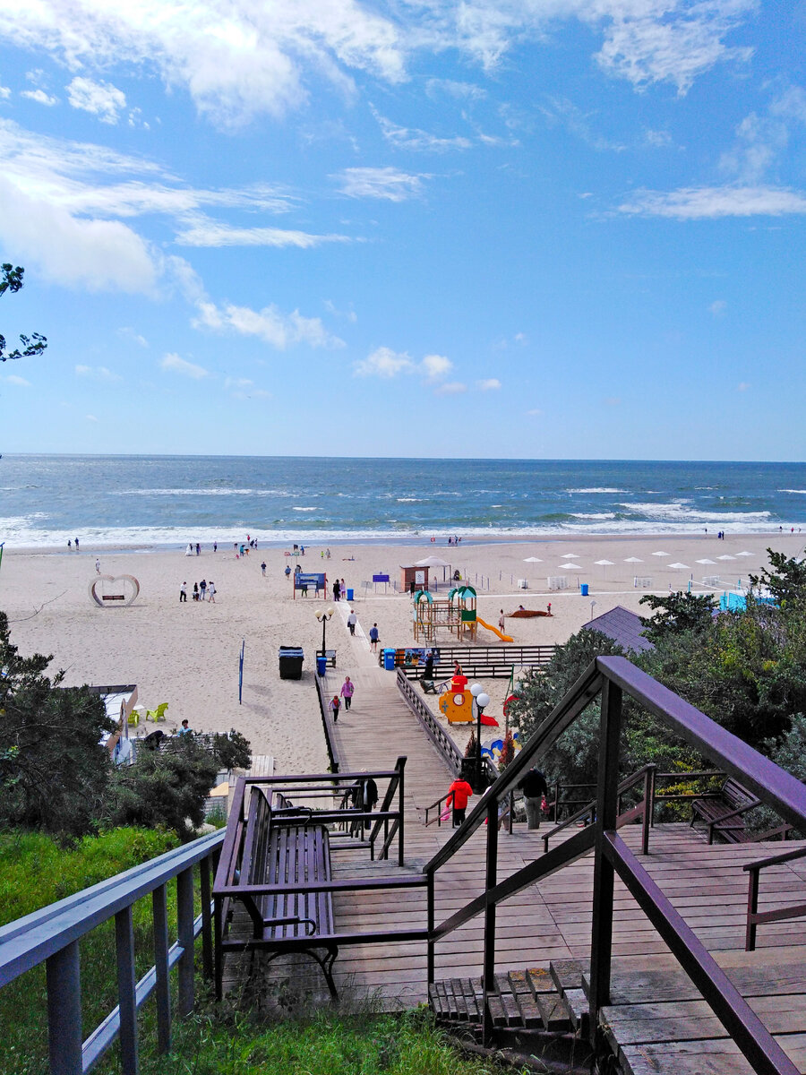 Так что если вы вдруг спустились к Центральному пляжу из парка Беккера, и вас там что-то не устроило - ну бывает же такое! - то можно вполне себе попасть на другой пляж Янтарного - Шахта Анна, пройдя по променаду каких-то пару километров. Кстати, оба пляжа имеют высшую пляжную награду Голубой флаг.