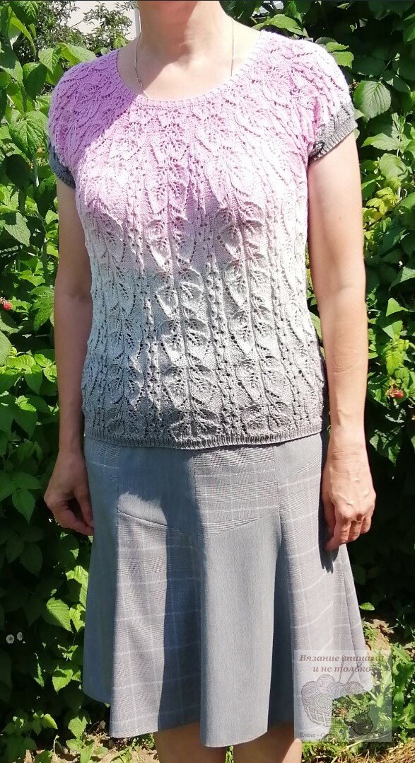 Добрый день, дорогие подписчики и гости канала! Я к вам со своей новой работой - ажурной кофточкой с японской круглой кокеткой. Оцените мою работу Как вам? Кофточка прекрасно смотрится как с юбкой, так и с брюками. Кофточка связана из пряжи YarnArt flowers с очень плавными переходами от розового до среднего серого цвета. Ушел целый моточек на размер 48-50. Метраж: 1000 м на 250 г состав: 55% хлопок, 45% полиакрил Цвет 293 Кофточку вязала сверху вниз с круглой кокеткой. Схему взяла из книги Хитоми Шида "260 необычных схем для вязания спицами". Единственное изменение - я не вывязывала шишечки. Мне кажется, и без них смотрится довольно хорошо. Узор получился объемный и фактурный. Набрала на спицы 2 мм 128 петель (16 раппортов) и связала резинку 1х1 со скрещенной лицевой петлей на высоту 5 рядов. Далее провязала 1 ряд лицевыми петлями, 1 рад изнаночными петлями и перешла на основной узор. Основной узор вязала спицами 3 мм. На высоте 18 см отделила рукава и связала азиатский росток на вы