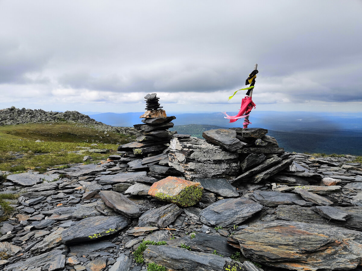 Изрядно вымотавшись, спустя некоторое время мы вышли к указателю "Нургуш". Вы его точно не пропустите. Начиная с этого места пейзаж перед глазами начинает резко меняться - трава выше, деревья массивнее. Тут начинается восхождение на вершину горы Нургуш. Склон представляет собой заросли из вековых сосен, они выглядят очень эффектно на фоне возвышающихся вдали горных хребтов. Выше 800–900 м начинается редколесье. Тут ландшафт уже окончательно и необратимо поменялся - горная тундра, покрытая низкорослыми елями, вызывает чувство удивления и заставляет идти по плато с открытым ртом. Это просто нечто! Здесь очень ветрено, если Вы пойдете сюда в прохладную погоду, не забудьте запастись курткой. Некоторые встают в лагерь именно тут, дальше у Вас не будет шанса это сделать - слишком открытая местность. Далее нас ожидали каменные россыпи курумников, покрытые живописными лишайниками. В начале плато возвышается так называемый Каменный купол, покрытый горными останцами. Вначале мы приняли Каменный купол за главную вершину, но маркированная тропа следовала дальше. 5 минут спустя начались субальпийские луга. Казалось, будто мы очутились где-то в Швейцарских альпах. Вот оно - многообразие местной флоры и фауны. Здесь встречается большое число редких эндемичных и реликтовых видов растений и животных. В конце лета – начале осени много ягод: брусника, голубика, черника. Именно благодаря этому в сезон цветения ягод тут лучше не появляться, ведь в долине хребта очень много медведей, и, когда ягоды начинают цвести, здесь находиться очень опасно. Ступая по альпийским лугам Нургуша, мы вдруг оказались в наводненном месте и пришлось немного вымочиться, но это было абсолютно не страшно и даже весело. Немного погодя мы подошли к главной вершине Большого Нургуша, которая отмечена палкой с ленточками, торчащей из кучи камней. На вершине установлен большой металлический крест. «От посягательства всякого супостата на землю Уральскую», - говорится на нём. Отсюда открывается умопомрачительный вид на озеро Зюраткуль, и другие хребты горы Нургуш. Здесь мы провели около одного часа, в голове от счастья порхали бабочки и хотелось просто носиться за ними по живописным лугам Большого Нургуша, позабыв о всех невзгодах, которые периодически встречаются в жизни. Тут, на вершине, я даже запустил прямой эфир в запрещенной в России социальной сети, но у меня был всего 1 зритель. Эх, Вам очень не повезло, что Вы пропустили все то торжество красок, которым укутан хребет. Но это лучший повод приехать сюда самим!