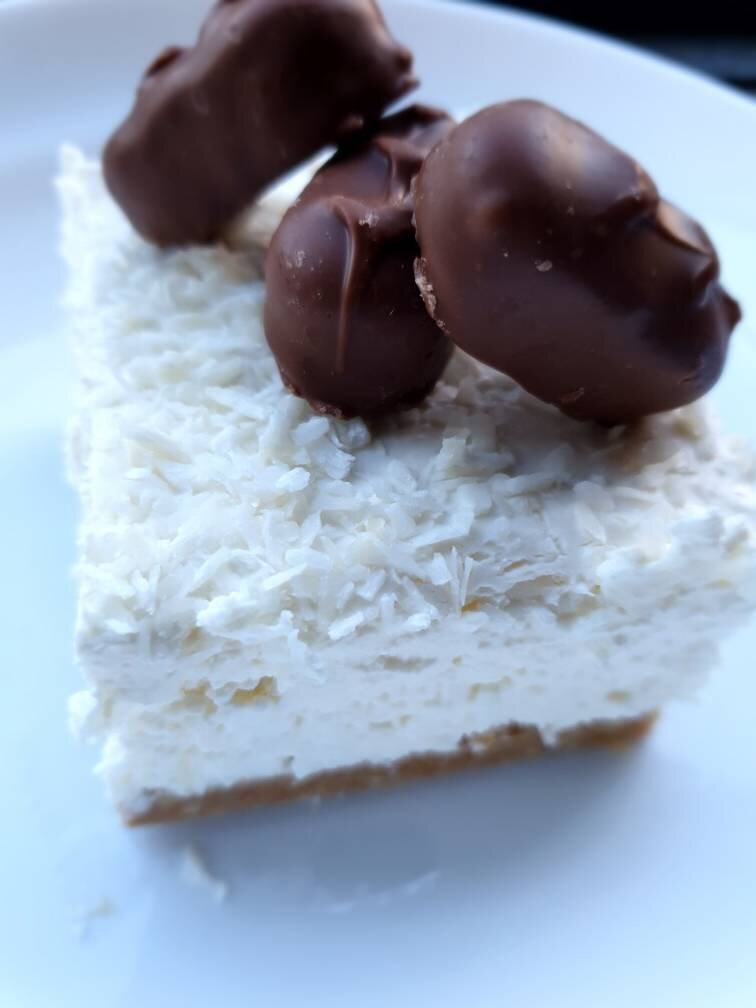 #календар Ингредиенты: пісочного печива, вершкового масла, творога, вершків 33%, желатина (100 мл води), кокосової стружки, стевії або цукру (за бажанням) Способ приготовления: Печиво перетираємо в крихту. Вершкове масло розтопити. З'єднати печиво з вершковим маслом. Висипати в форму та сформувати корж Желатин залити холодною водою та залишити набухати. Охолодженні вершки взбити до легких піків. З'єднуємо творог, вершки, стевії (цукор). Ретельно збиваємо. ☝Замість стевії (цукру) я додала 50 мл згущеного молока. Желатин розтоплюємо та додаємо до мусу. В мус додаємо кокосову стружку. Ретельно перемішати. Викладаємо мус на пісочний корж. Зверху добре присипати кокосовою стружкою. Відправити в холодильник бажано на ніч. Смачного😊