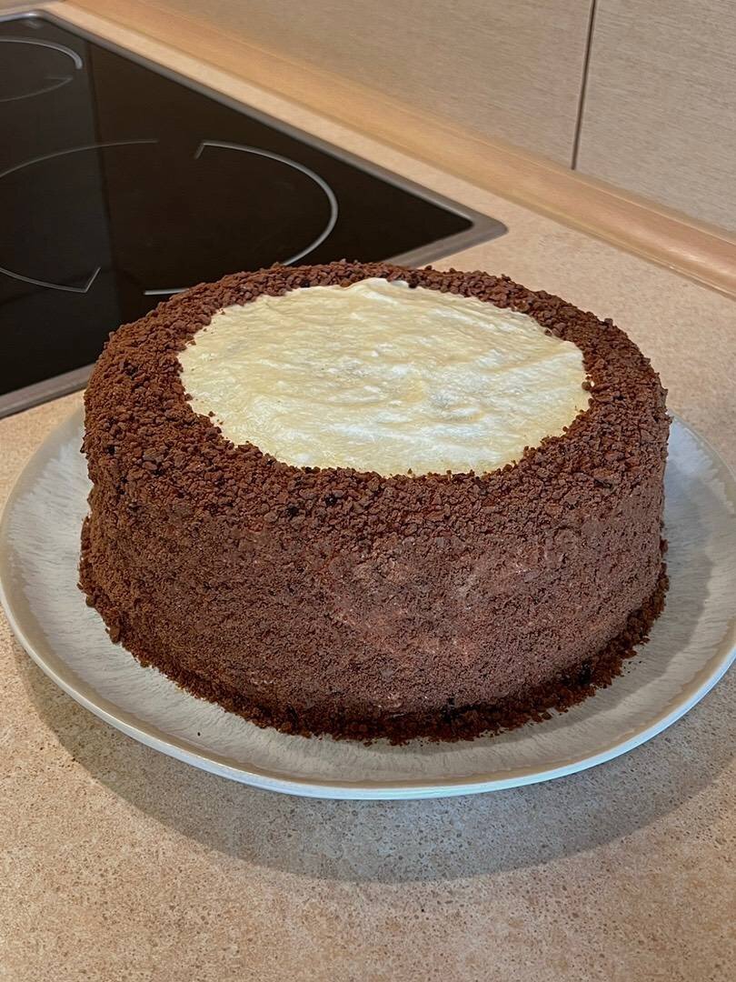 коржи 20 см Ингредиенты: Коржи, сливочного масла, сахара, соли, гречишного мёда, соды, яйца, какао порошка, муки, Крем, молока, желтка, муки, сахара, сливочного масла, сметаны (от 18%), Ванильная эссенция/Ванилин Способ приготовления: | Тесто | В сотейник отправить мёд, масло, сахар и щепотку соли. Поставить на медленный огонь, перемешать до однородности. Добавить соду. Если мёд натуральный, масса начнёт увеличиваться и пениться, побелеет. Если же нет, то добавьте 1,5 ч.л. разрыхлителя на этапе с мукой. Даём массе полностью остыть. В остывшую медовую смесь вводим по одному яйцу. Перемешиваем до однородности и просеиваем какао. Когда всё хорошо объединилось, добавляем муку. Не просеивайте сразу 410 г, возможно, вам понадобиться меньше, либо чуть больше. Но не переборщите. Тесто должно получиться мягким, походим на детский пластилин и не липнущим к рукам. Тесто делим на 12 коржей. У меня каждый по 71-72 г. Скатываем в шарики, накрываем плёнкой и отправляем в холодильник на 40 минут. | Ва
