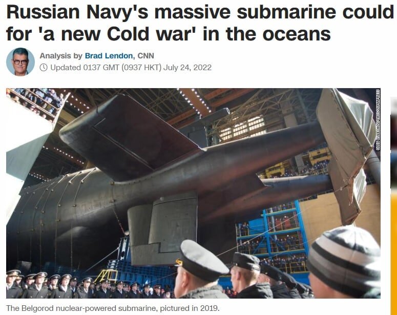 CNN пишет, что новая подлодка "Белгород" будет нести ядерные ракеты "Посейдон", которые издание называет "уникальными в мировой истории". Эти торпеды "запускаются с расстояния в сотни миль и преодолевают береговую оборону, путешествуя по морскому дну. Как американские, так и российские официальные лица заявляют, что торпеды могут доставлять боеголовки мощностью в несколько мегатонн, вызывая радиоактивные волны, которые сделают участки побережья непригодными для жизни на десятилетия. "Посейдоны" предназначены для затопления прибрежных городов США радиоактивными цунами". Самое забавное, что бритиши приводят в своих примерах США, но сами сидят на острове и прекрасно понимают, что Посейдоны разрабатывались специально для них. @OpenUkraine Американское военное сообщество с тревогой отреагировало на новости о передаче российскому флоту атомной подлодки «Белгород». Такая реакция весьма обоснована, пишет Sohu. Аналитики китайского издания, материал которых приводит «ПолитРоссия», напомнили, чт