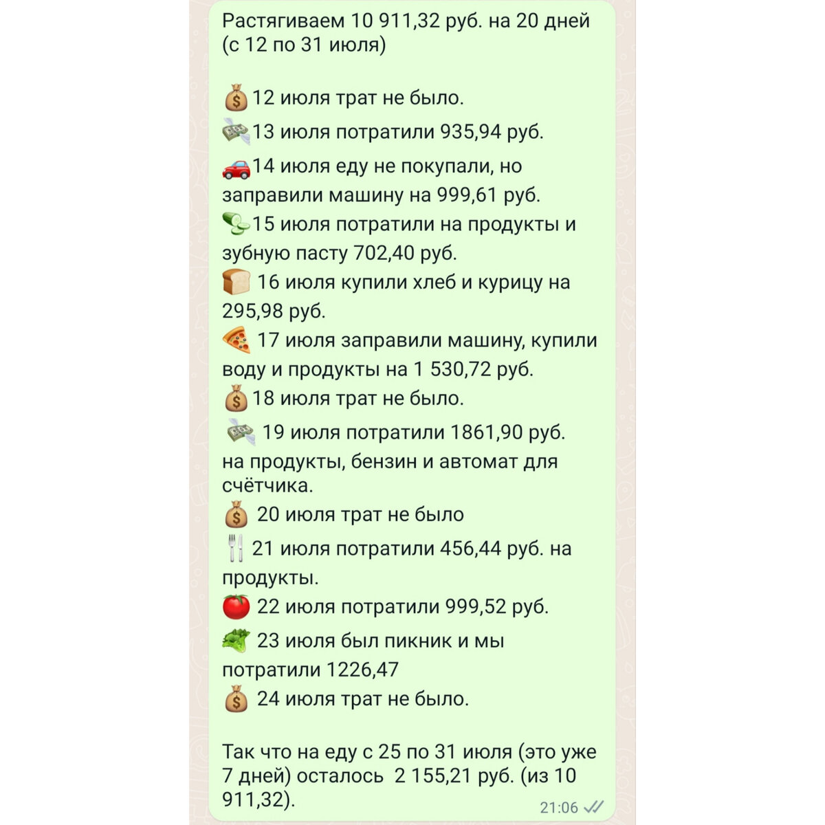 Растягиваем 2155 рублей на 7 дней. Итоги эксперимента 24 июля
