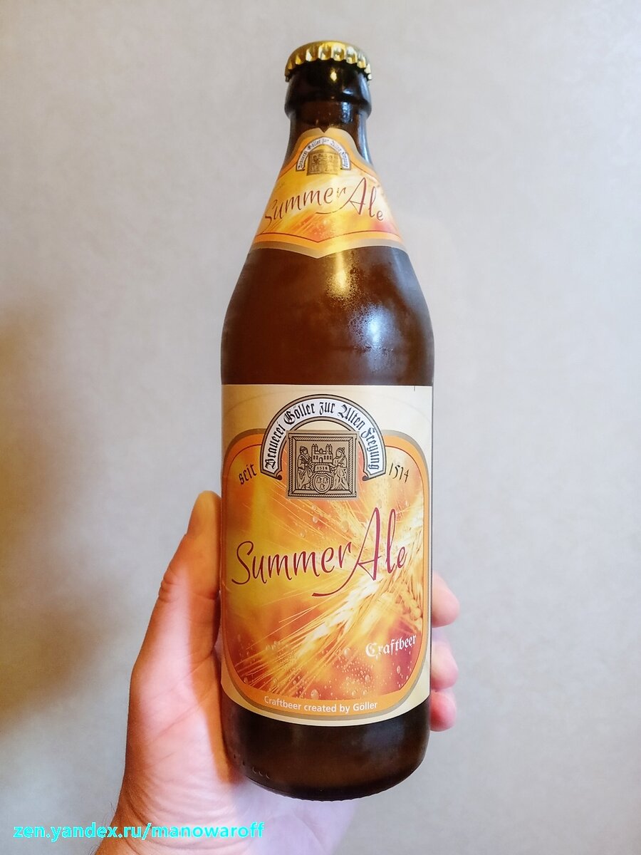 Эль, действительно, так и называется - Summer Ale. А варит его баварская пивоварня Brauerei Göller, чье пиво мне понравилось все, без исключения. Уверен, что и этот сорт мне также понравится. Данный эль, кстати, является сезонным, т.е. варится только раз в году, так что его можно легко прощелкать, как я это сделал в прошлом году. Вероятно, что и в этом году я бы его тоже прощелкал, но, к счастью, коллега с канала Beer & Travel вовремя напомнил о появлении этого пива в магазинах сети "Отдохни". Так что после возвращения с покатушек я сразу же метнулся в магазин и разжился парочкой бутылок этого эля. Что ж, почитаем, что пишут об этом пиве и приступим к самому приятному - к дегустации: Саммер Эль варится один раз в году в ограниченном количестве. Как и другой сезонный сорт, Хопфен-Вайссе, это пиво продолжает летнюю тему цитрусовых в аромате. Саммер Эль — удивительный легкий и при этом хмелевой сорт крафтового пива, при производстве которого была использована оригинальная технология остан