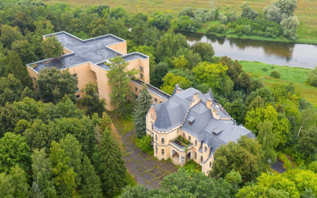 Неоготический дворец расположен в селе Успенское в 20 км от МКАДа. Имеется также довольно экстравагантная пристройка в стиле советского модернизма. Замок был построен в XIX веке и до революции принадлежал промышленнику Сергею Морозову. Здесь гостили художник Исаак Левитан и писатель Антон Чехов.