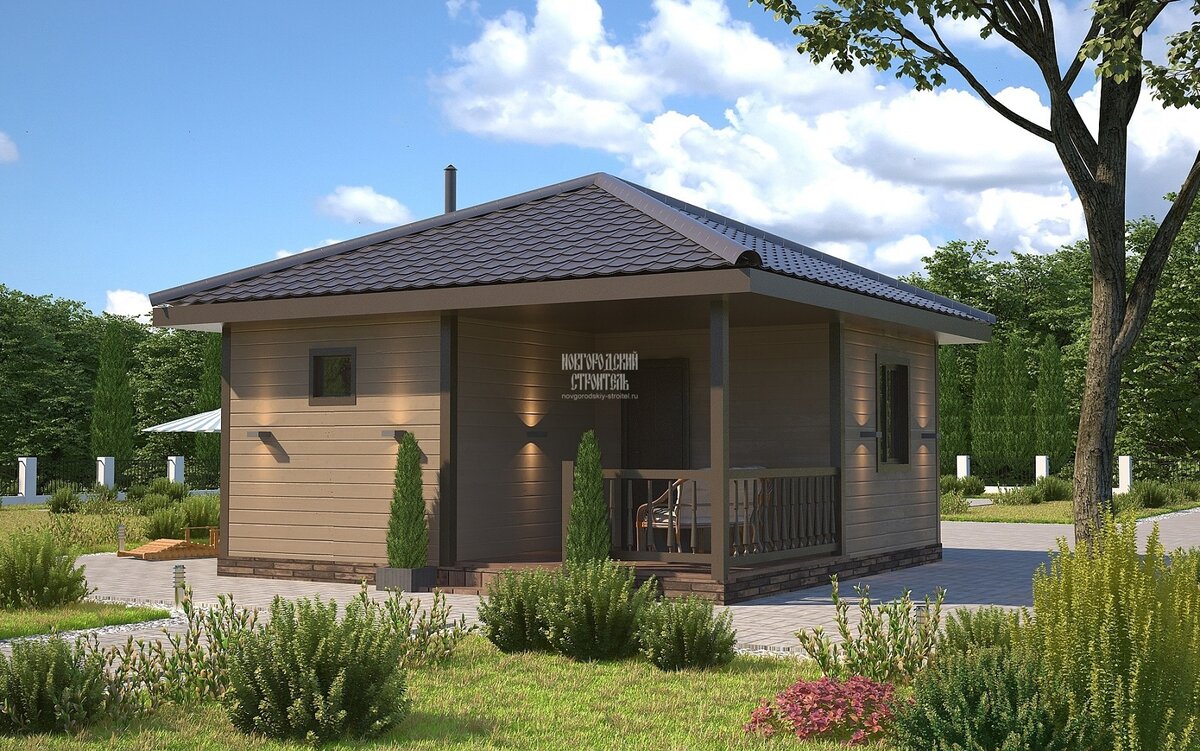 Сегодня мы поговорим о нашем новом проекте одноэтажной бани размером 6х6м. Баню можно построить как в брусовом так-же и в каркасном исполнении. Баня имеет открытую террасу размером 3х3м с ограждением из резных балясин, что бы можно было в теплое время выйти на террасу, подышать свежим воздухом, попить чаю.