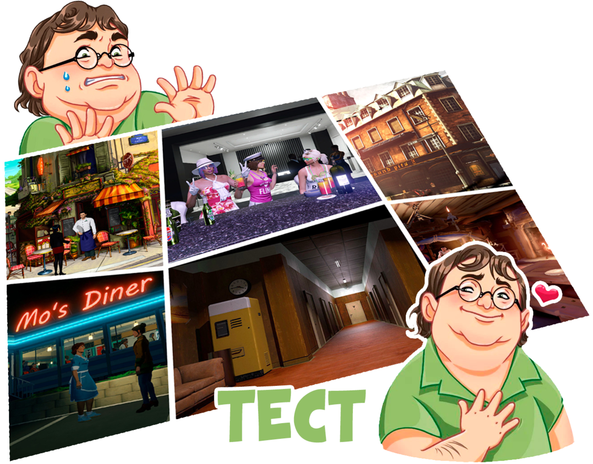 Как вы думаете, можно угадать популярную игру по трактиру/кафе/ресторану/столовой или мотелю? Я тоже думаю, что можно ... НО сложно. Поэтому ... в этот раз я решила не давать подсказки. Немного не логично. Но вы дочитайте! Вместо этого после каждого вопроса я буду сразу показывать верный ответ. Только чур не читерить и не переигрывать! Иначе самим же неинтересно будет! Надеюсь такой формат теста зайдет :) Включаем музыку и погнали. Тест: Угадываем игру по мотелю или едальне Друзья, спасибо, что дочитали. Пишите результат в комментариях и ... мне очень нужна "обратная связь". Как вам такой формат теста? Делать его ровно в 2 раза дольше. Но ... если зайдет, то я приноровлюсь :) Другие тесты: