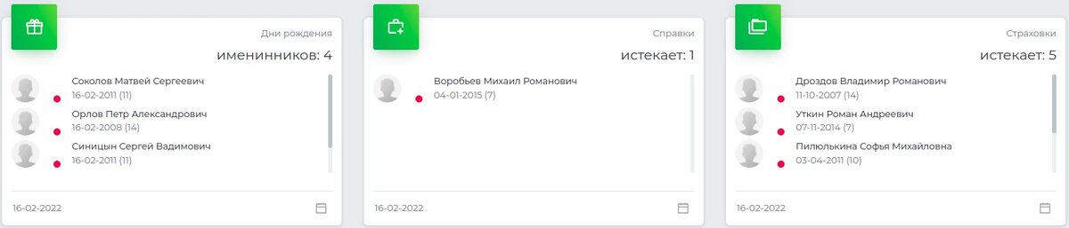 Виджеты дни рождения, справки, страховки