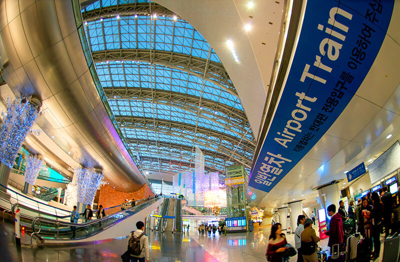 Главные воздушные ворота и самый большой аэропорт Кореи – Инчхон, расположенный в 70 километрах от Сеула. Аэропорт был открыт в 2001 году, а его второй терминал – в 2018-м, так что это одна из самых современных воздушных гаваней мира. Именно отсюда начинают путешествие по стране большинство туристов из России. Добраться из аэропорта до Сеула можно несколькими способами. Самый быстрый – поездка на экспресс-поезде, который без остановок следует до станции «Сеульский вокзал». Пассажирам некоторых авиакомпаний предоставляется скидка на билет (подробнее – www.arex.or.kr). Обычный поезд останавливается на 14 главных станциях. Кроме того, из воздушной гавани аэропортовые автобусы отправляются в различные районы Сеула. А тем, кто хочет доехать до города с комфортом, стоит поехать на автобусе-лимузине или такси. Для передвижения по стране используются внутренние авиарейсы, которые из Сеула чаще всего совершаются из аэропорта Кимпхо. Также популярны пассажирские поезда (сверхскор