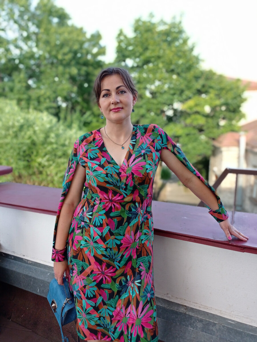 Опять я с огромной скоростью шила платье,еле успела.... Начну с того,что никак не ожидала,что раскрой вискозы затянется на два дня. Ткань очень капризна,а в инструкции куча узлов,которые предлагают потайной ручной стежок. Но почти каждый прокол даже иглы для бисера оставлял стрелку на черном фоне 😩 Пришлось заменить ручные стежки сквозной строчкой на машинке. Плохо себя вела ткань и после дублирования. Подборт всё время хотел выглянуть. Я приняла решение его тоже пришить на 2 см и подрезать 🙈 Наконец она село как надо . На этом мои приключения не закончились. С запахом ткани тоже пришлось повозиться,сказалось отсутствие манекена и помощника. И на мой взгляд слишком мало кнопок предлагается в инструкции и они тяжеловаты для вискозы.Я всё таки поставлю пуговицы. В целом платье очень интересное и даёт гарантию,что Вы будете неповторимы на любом празднике 🤞